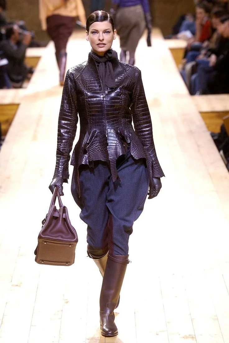 Les codes sont là: cuir, selles, harnais, soie… mais plus originaux. Le cuir est retravaillé avec des techniques plus innovantes. Les matières sont toujours aussi raffinées et élégantes mais plus modernes dans leur utilisation.
