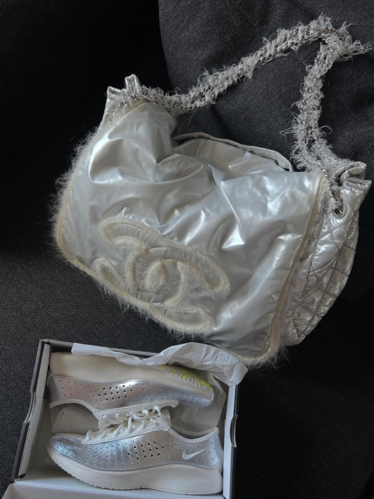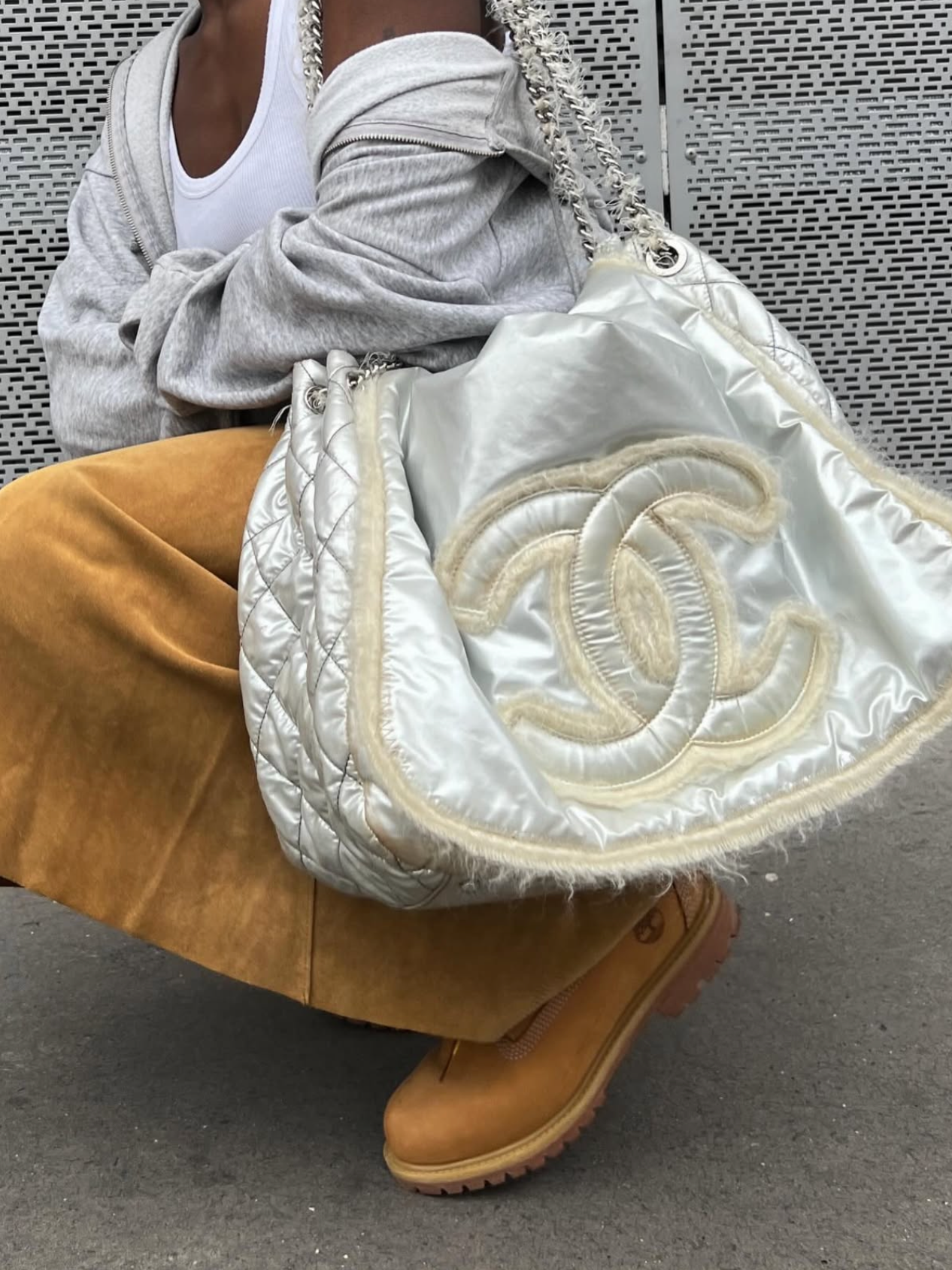 J’ai également chiné sur Vinted ce sac Chanel argenté et fausse fourrure crème. J’hésitais il y a quelques années à l’acheter et finalement je l’ai vu à bon prix et j’ai sauté sur l’occasion! C’est vraiment le winter bag parfait, un sac qui se suffit à lui même, tu peux être habillée simplement et prendre ce gros sacs et c’est bon. J’ai hâte d’également le porter cet été, je suis obsédée depuis un an par les sacs argentés, il sera super pratique au vu de sa taille pour les sorties avec mes enfants.