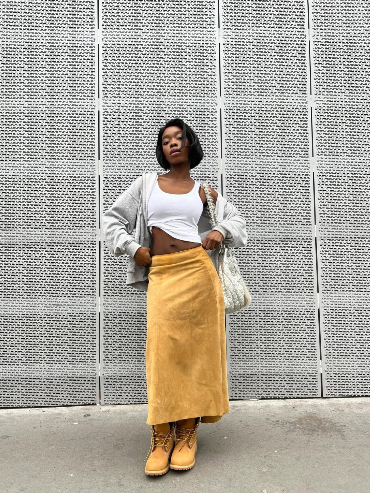 En adepte du matching j’ai voulu soit mettre une paire également en daim ou un sac, j’ai opté pour ma paire de timberland, classique, imposante et parfaite pour ce temps glacial (oui no comment sur le haut qui donne l’impression d’être en été xD).